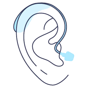 Audífonos retroauriculares, diseñados para estar detrás de tu oreja. Estos son muy livianos y son bastante cómodos.